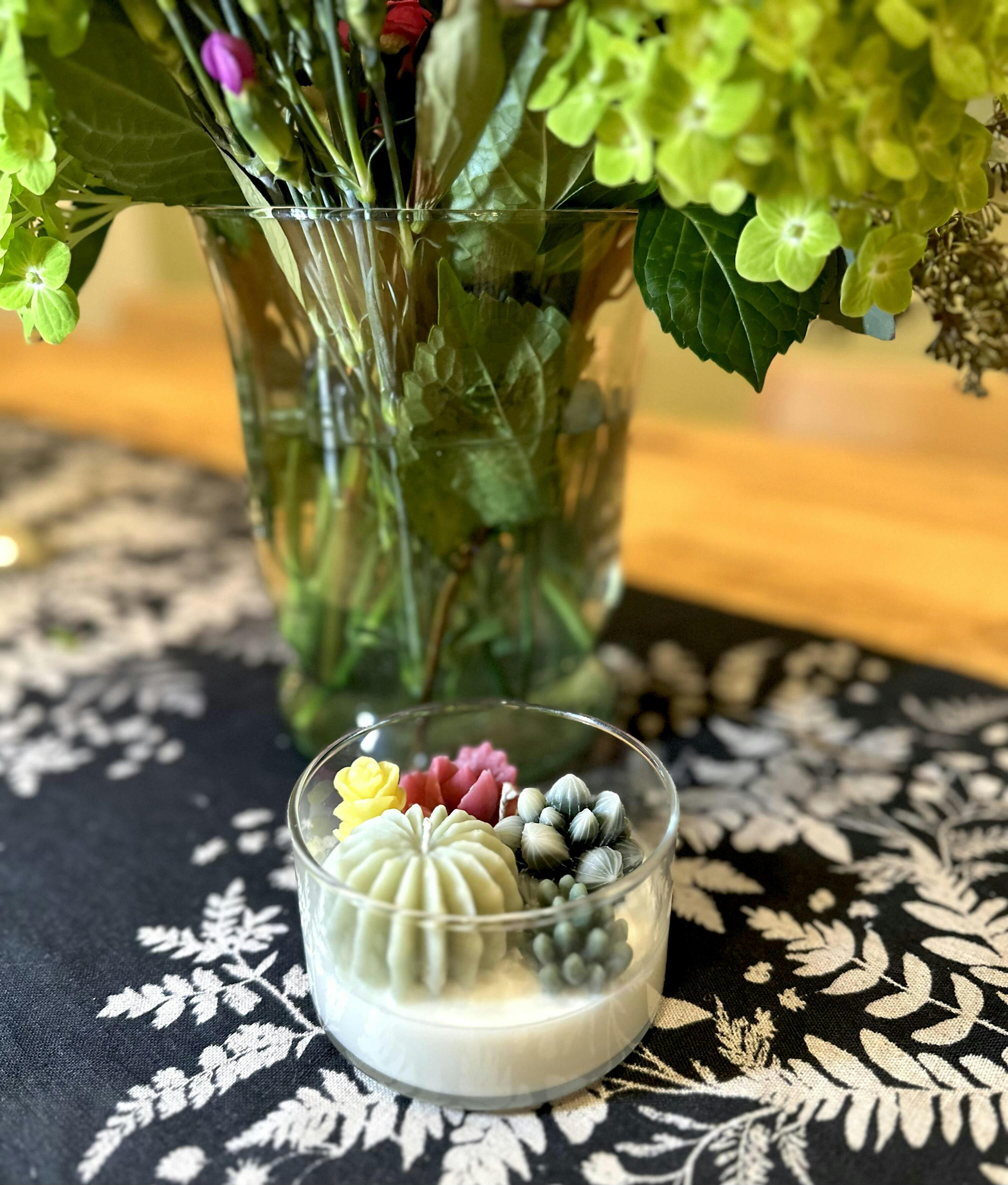 - Botanical Masterpiece: Hand-poured with intricate plant details, succulents, and greenery suspended in premium soy wax — like a living terrarium frozen in time